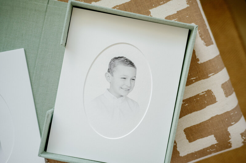 Your favorite images matted to 11x14 and stored in an heirloom linen box, ready to be viewed or easily framed. Each photograph is printed on archival, fine art paper to last generations.